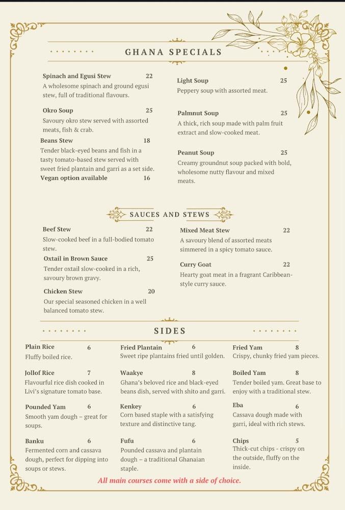 Located at 249 London Rd, Mitcham CR4 3NH, Livi's Restaurant and Lounge stands out in South London for its rich Ghanaian flavor and culture. The moment you step inside, you’re greeted by a modern, stylish interior that honors its African roots while offering a chic environment for dining. Livi’s commitment to fresh, high-quality ingredients ensures that every plate served bursts with authenticity and flavor. Simple and comfortable seating arrangements allow for meaningful gatherings, whether with friends, family, or colleagues. With consistent opening hours throughout the week, Livi’s welcomes diners every day, creating a community space that thrives on shared experiences over hearty meals. The friendly staff enhances the experience, providing attentive service while respecting personal space, making it ideal for both intimate dinners and lively celebrations. This is a place where you can savor the true taste of Africa while enjoying a family-like atmosphere that keeps guests returning.